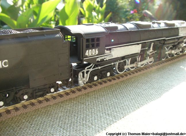 Diese Big Boy im Maßstab 1:87 entstand aus dem Revell Bausatz 02165. Das Modell wurde entsprechend der Bauanleitung gebaut und ist relativ einfach zusammenzubauen. Die "Lackierung" gestaltete sich einfach, da es große einfarbige Flächen gibt. Lackiert wurde mit Acryl-Farben und Pinsel. Vorbildinfos gibt es hier: [ Wikipedia:UP-Klasse_4000]