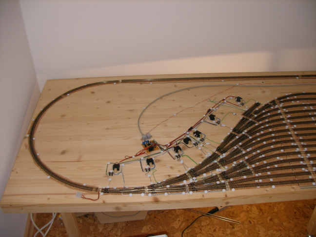 Die Weichengruppe auf der linken Seite mit den Stellvorrichtungen.